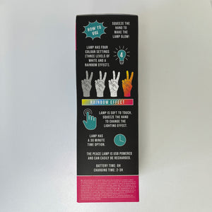 Originelle Silikonlampe in Form einer Hand, die das ikonische Friedenszeichen macht. Sorgt überall dort, wo sie leuchtet, für eine sanfte, wohlige Atmosphäre.